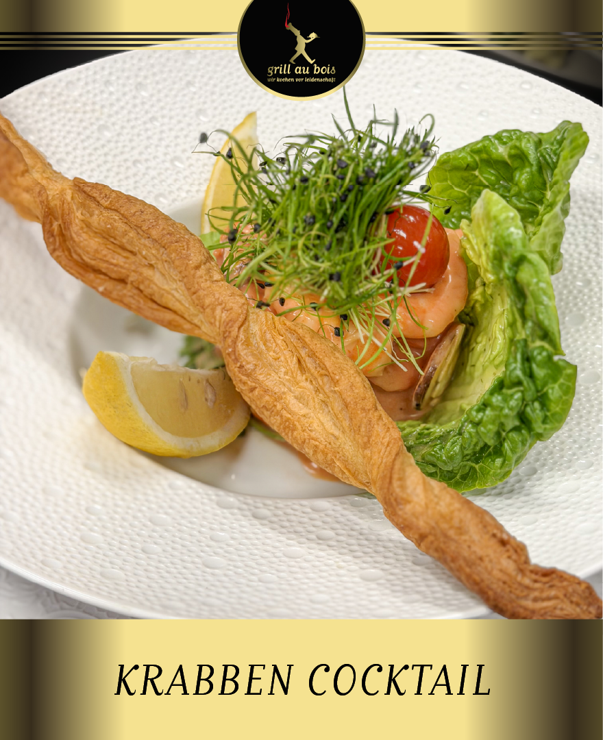 Eine beliebte Vorspeise. Wir verwenden Crevettes Rose/ Cocktailsauce und Hennesy Cognac. Dazu reichen wir Brioche vom Grill