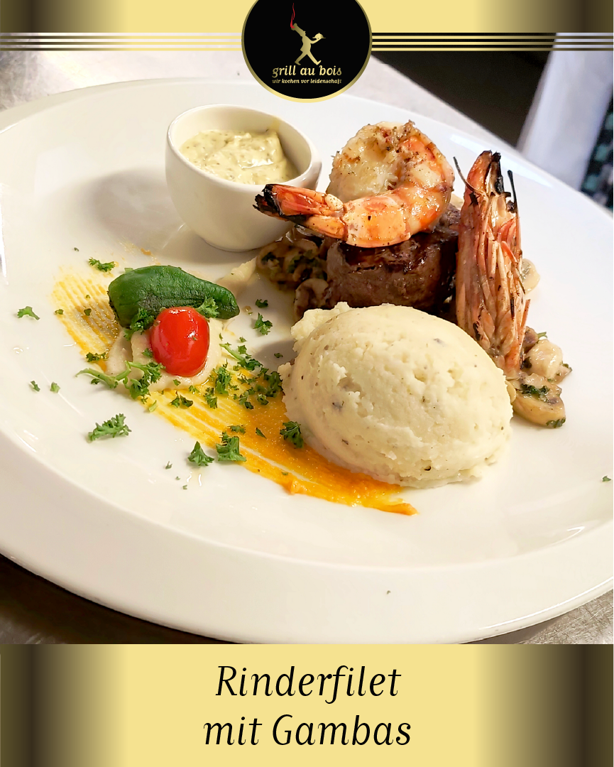 [701 ]Kreieren Sie Ihr eigenes Surf & Turf mit einem Steak Ihrer Wahl . Pro Gambas 25,00